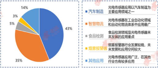 光電傳感器行業(yè)鏈下游主要涉及汽車(chē)行業(yè)、智慧物流行業(yè)、食品檢測(cè)行業(yè)、煙霧報(bào)警器(如圖1)。