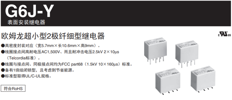 特點(diǎn):歐姆龍近年來(lái)的新系列繼電器,線圈與接點(diǎn)間、同極接點(diǎn)間均為FCC part68(1.5kV 10×160μs)標(biāo)準(zhǔn)。且交貨期短,是一款高性價(jià)比之選。