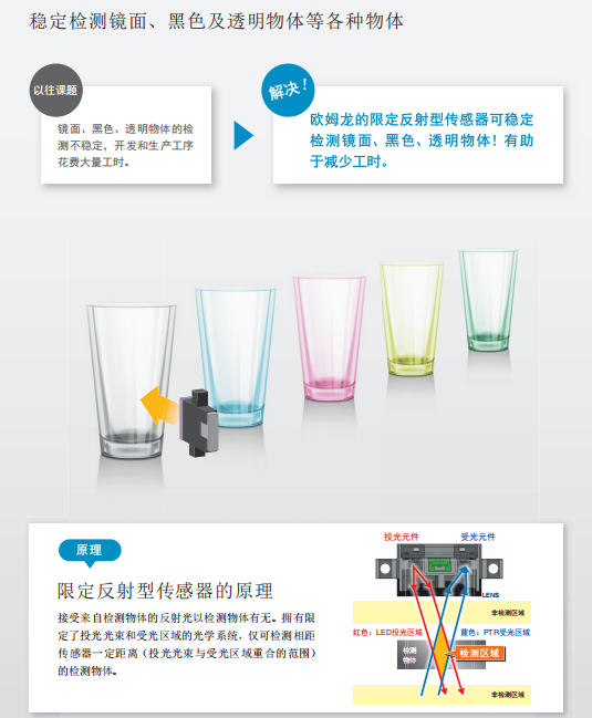 二、檢測(cè)物體不受限:探測(cè)范圍較廣,包括白色物體和黑色物體、透明和反光物體等。