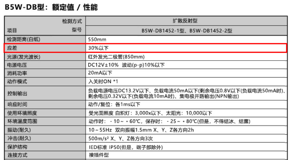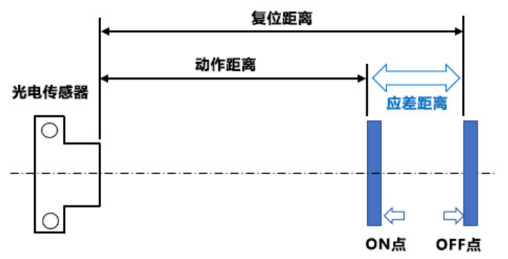首先跟大家解釋下何為應(yīng)差,應(yīng)差簡而言之就是距離,那是哪里到哪里的距離呢?下文會為大家做一個詳細(xì)的舉例說明,其文字描述為反射型光電傳感器時間動作距離與復(fù)位距離之差,稱為“應(yīng)差”。