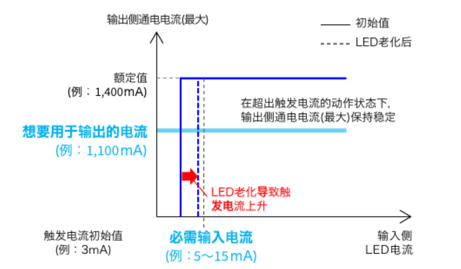 晶體管耦合器在增大輸入側(cè)電流時(shí),輸出側(cè)電流也會(huì)變大,所以與MOS FET繼電器相比,會(huì)消耗更多的電力。LED老化會(huì)使輸出也跟隨減弱,由此需要更多的電力;