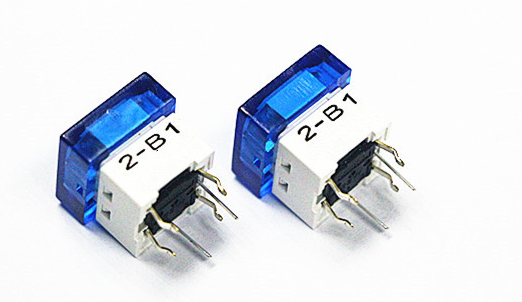 帶燈輕觸開關(guān)每個led燈都有一個燈腳標注顏色,帶顏色的這個燈腳代表led的負極。燈腳上面標注的顏色即帶燈輕觸開關(guān)發(fā)光的顏色,常見的燈顏色有:紅色、藍色、綠色、白色、黃色。