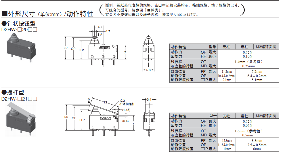 沒有擺桿也同樣使用方便的長(zhǎng)行程規(guī)格 (OT參考值 :1.4mm)