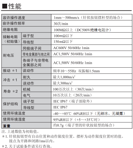 社內小尺寸、可進行可靠開關的長行程型開關