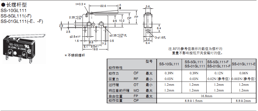 ? 備有0.1A~10.1A型的各個(gè)品種,產(chǎn)品規(guī)格齊全,是歐姆龍暢銷的開關(guān)。