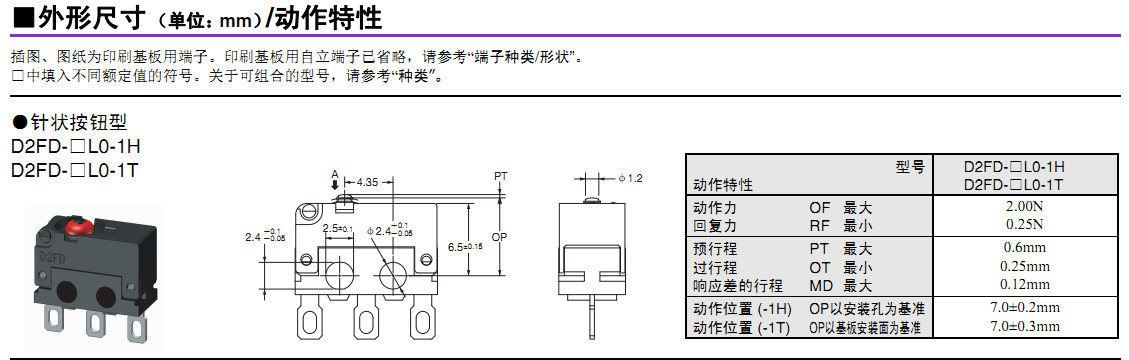 歐姆龍微動開關(guān), D2FD-2L0-1H,歐姆龍微動開關(guān)D2FD