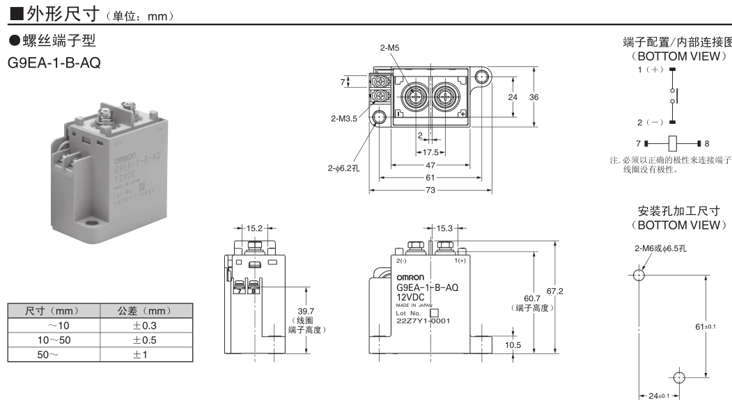 高67.2mm×寬36mm×長73mm的小型繼電器,可以開關(guān)DC400V 60A。(最大可切斷DC300V 600A)