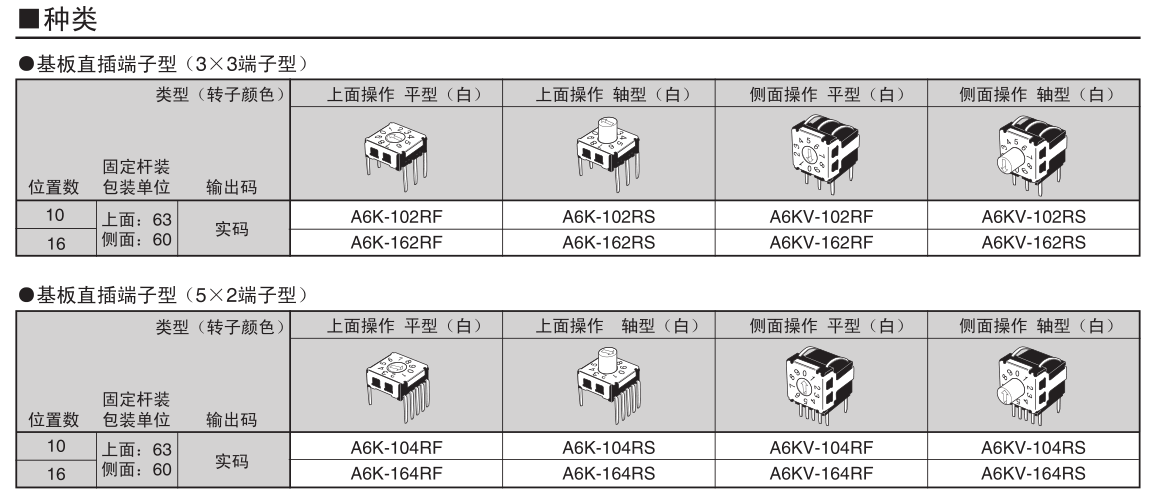 具有表面安裝端子、直插型端子的兩種型號對應。還提供側(cè)面操作型產(chǎn)品