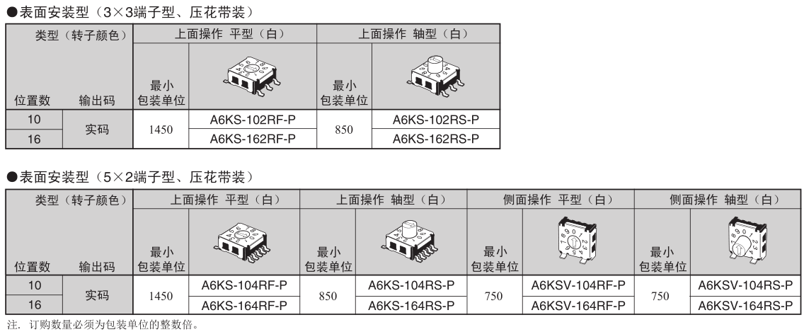 具有表面安裝端子、直插型端子的兩種型號(hào)對(duì)應(yīng)。還提供側(cè)面操作型產(chǎn)品
