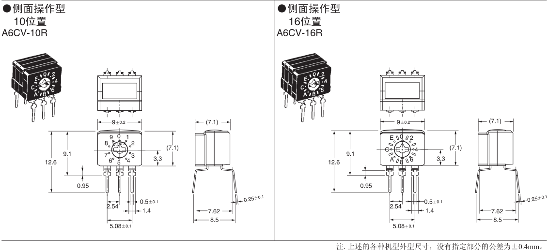 DIL-IC形狀的內(nèi)部密封結(jié)構(gòu)旋轉(zhuǎn)DIP開關(guān)