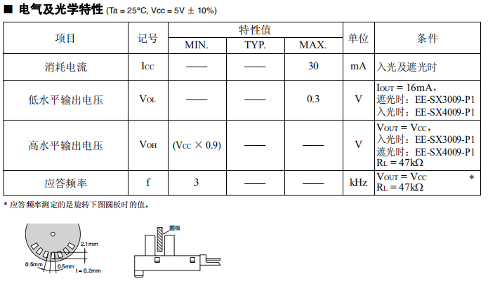 光電IC輸出(分為遮光時(shí)ON(EE-SX3009-P1)/入光時(shí)ON(EE-SX4009-P1)2種類型)