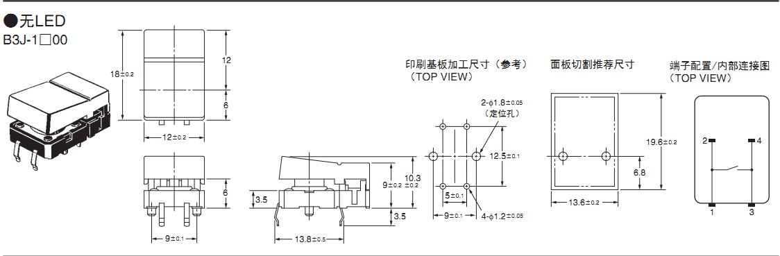 ●叉型、鉸鏈構造,具有齒切觸感良好的速動觸感。