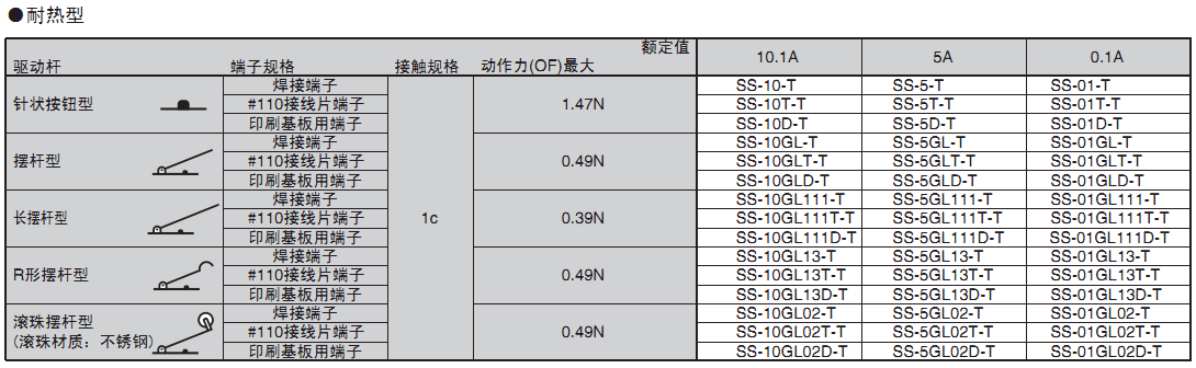 備有0.1A~10.1A型的各個品種,產(chǎn)品規(guī)格齊全,是歐姆龍暢銷的微動開關。