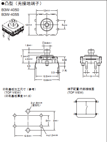 可與基板插入安裝型B3F系列互換安裝,利用密封構造實現(xiàn)高可靠性
