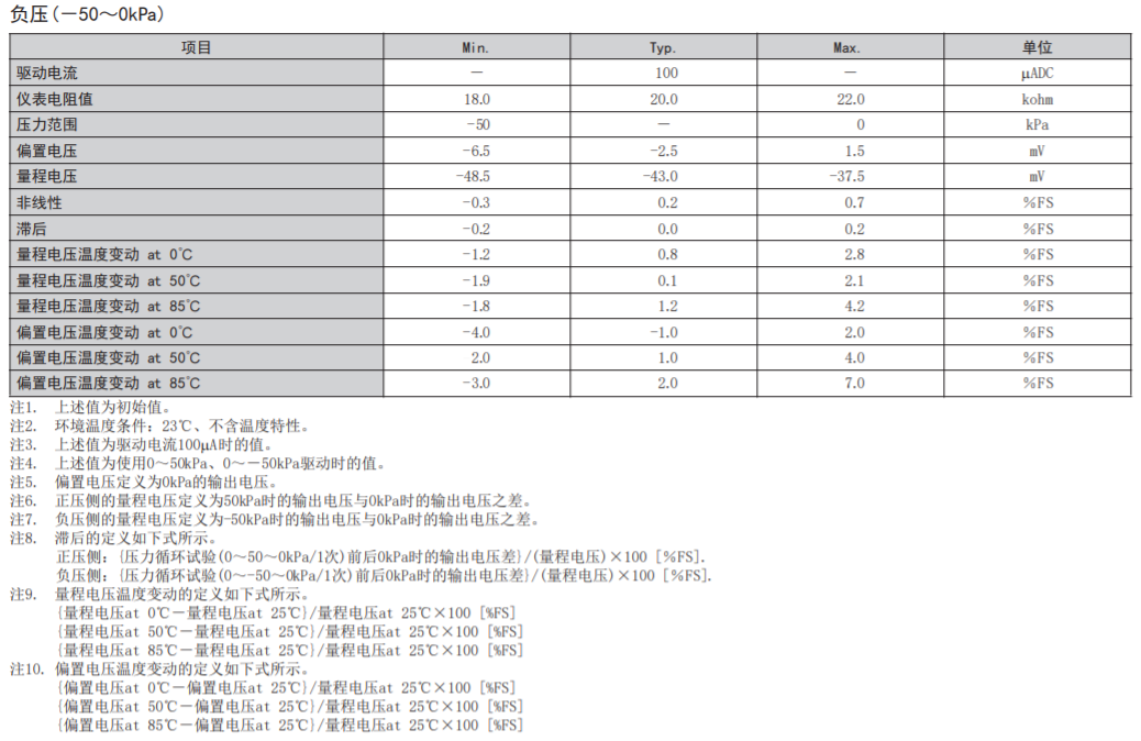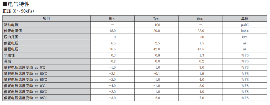 • 在-50kPa~+50kPa的壓力范圍內(nèi)具有優(yōu)異的電氣特性。