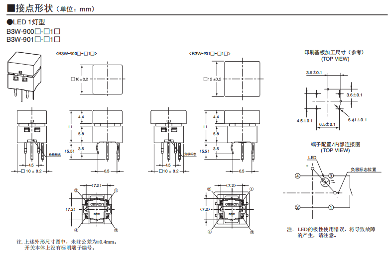 小型尺寸(10mm/12mm×高度11mm),實現(xiàn)亮度均勻的發(fā)光。