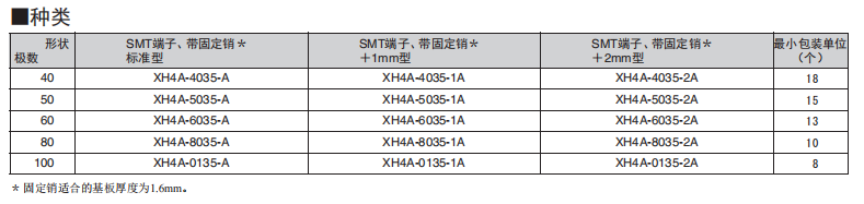 XH4A系列 半間距連接器(低高度重疊連接用)