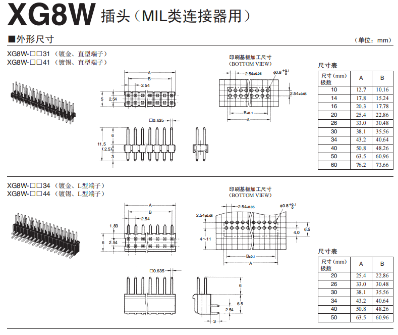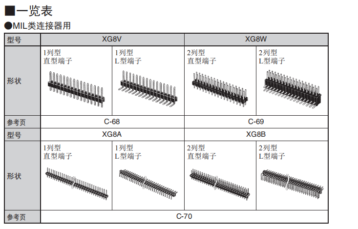 2列型L型端子插頭采用區(qū)間型基板,提高了焊接效率,再使用簡易的鎖定擺桿,就可方便鎖定(XG8V、XG8W直型除外)。