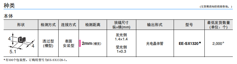 槽型光電開關(guān)EE-SX1320(槽寬:2mm)