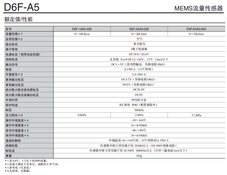 • D6F-A5空氣流量傳感器0-50L/min